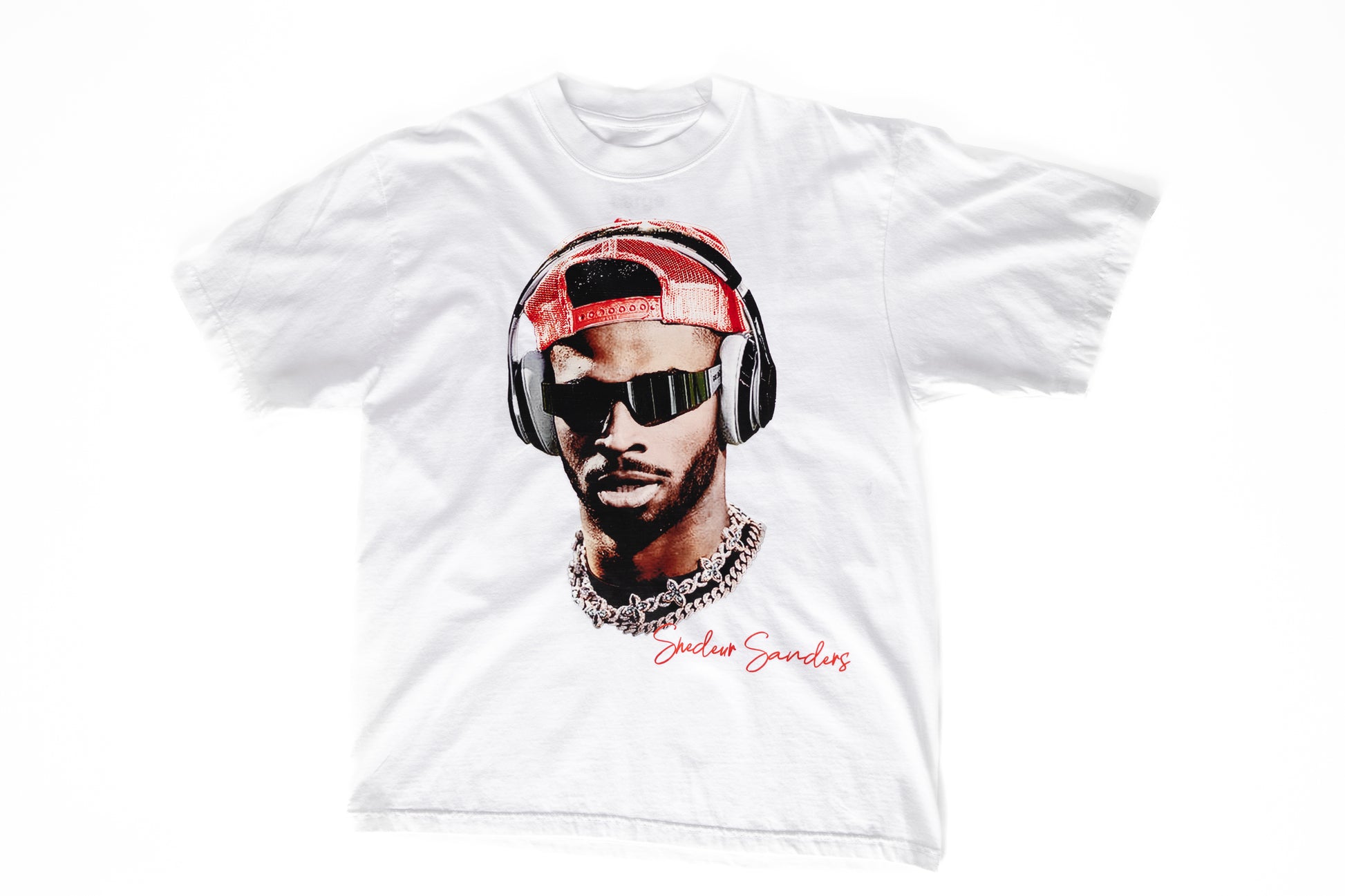 This premium graphic T-shirt is DTG printed and designed to match Shedeur’s energy. The front features a massive full-print design that takes over the entire shirt, showcasing his iconic chain, signature Dre Beats headphones, and that unmistakable QB swagger we’ve all come to know. It’s loud, it’s bold, and it captures his presence perfectly.