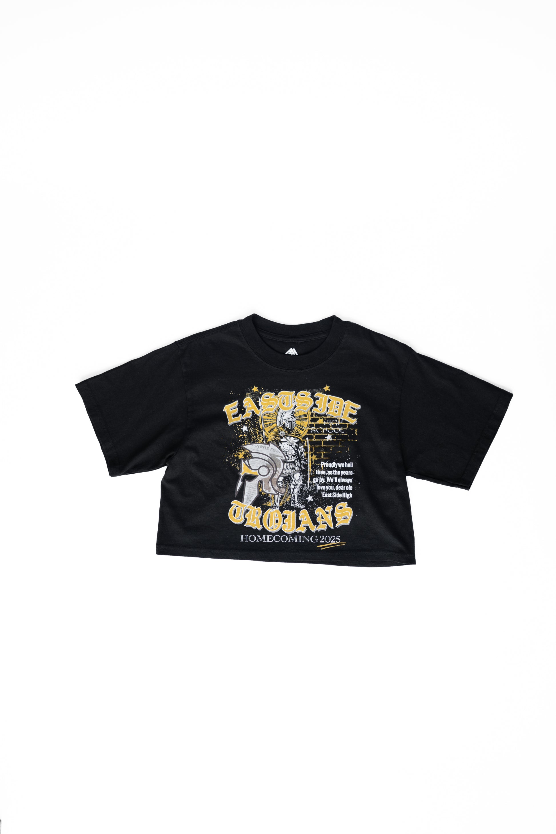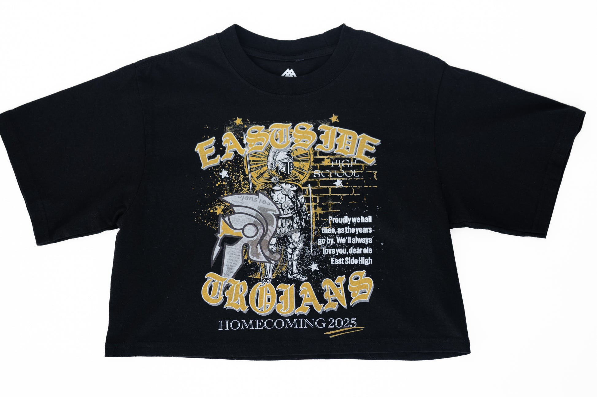 Celebrate Homecoming in style with this uniquely designed women’s crop top, made to honor the iconic and unforgettable East Side High School Trojans. Featuring a bold, vibrant DTF (Direct-to-Film) print, this piece delivers lasting color and detail, perfect for showing your school spirit with a modern twist.